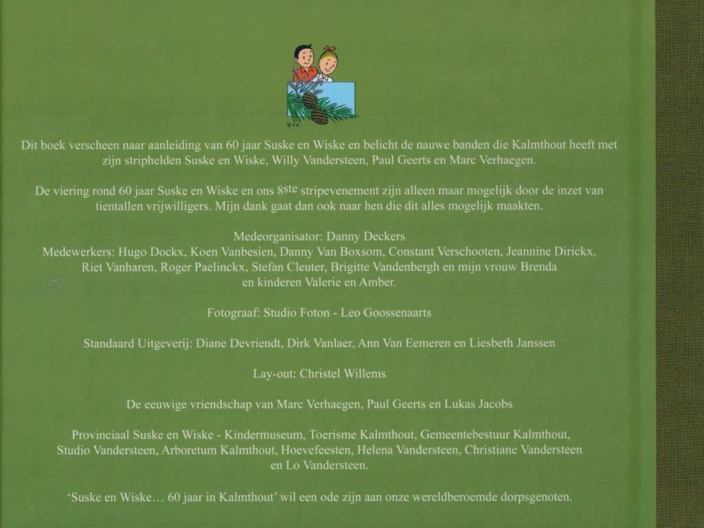 Het boekje bevat 34 pagina’s vol teksten, fotomateriaal en schetsen (nog nooit vertoond) die de auteurs ooit voor Kalmthout hebben gemaakt. De cover van het boekje zou oorspronkelijk door Marc Verhaegen worden gemaakt. Na zijn ontslag is deze taak echter overgenomen door de nieuwe tekenaar Luc Morjaeu. Aan de inhoud van het boekje wordt uit respect voor Marc Verhaegen niets gewijzigd.